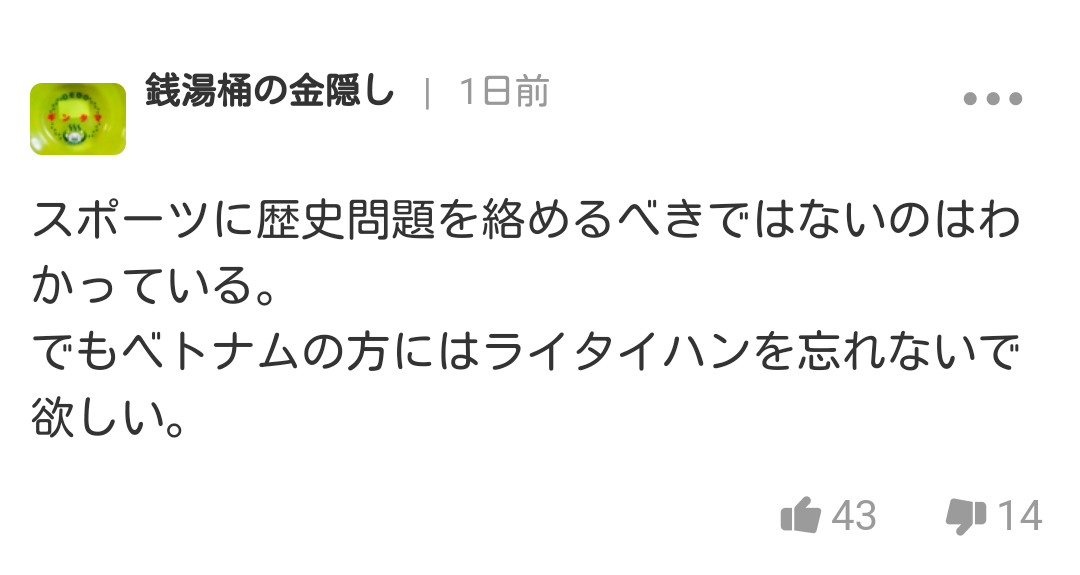 ネトウヨの自尊心が傷ついたからってベトナムの喜びを邪魔してもいいとかどこまで幼稚なんや