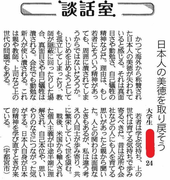 この大学生の言う「日本人の美徳」はむしろネトウヨや今の権力者から失われてる