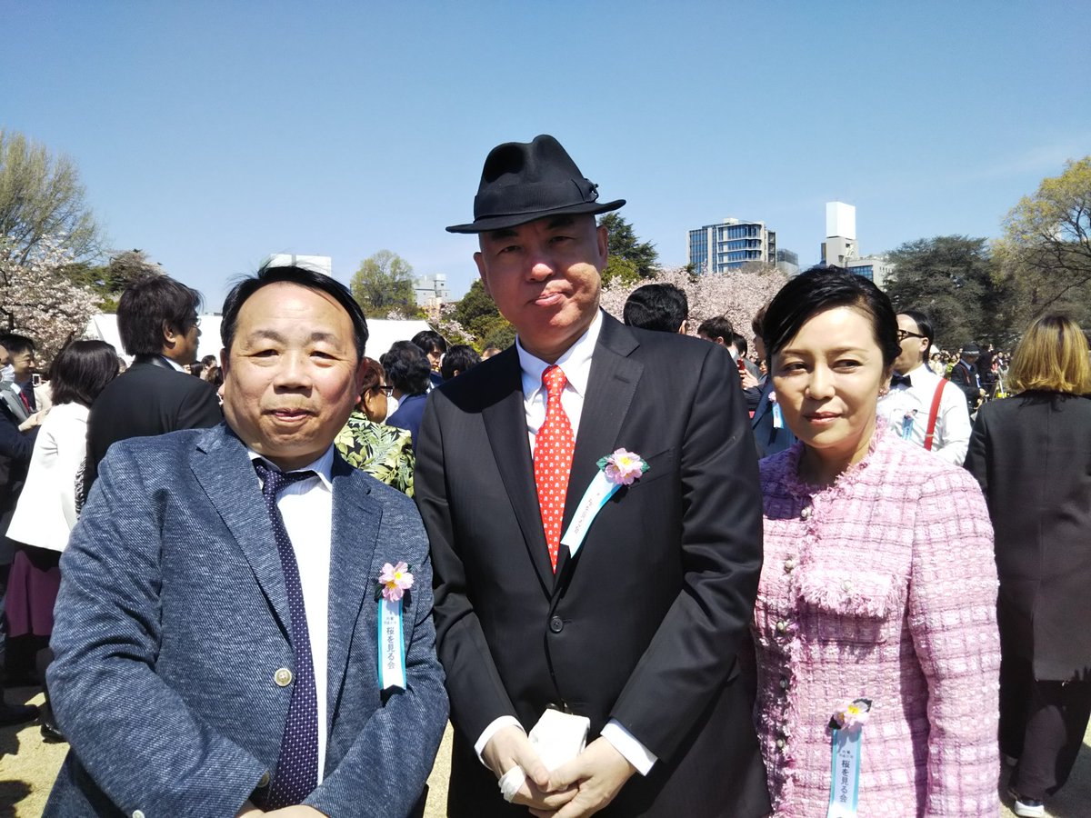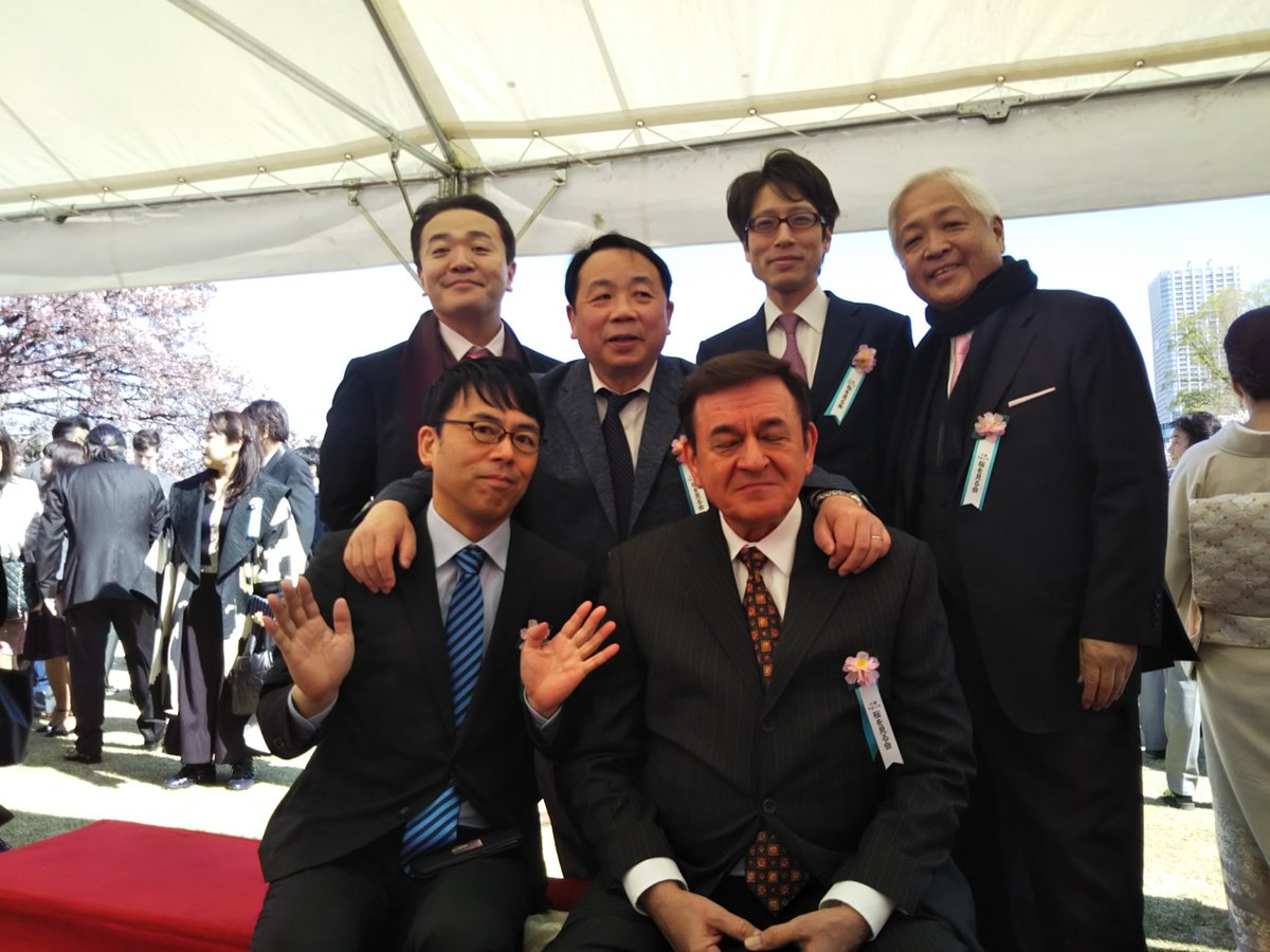 新宿御苑、総理主催「桜を見る会」の「文化・芸能参加者特別エリア」、仲間たちと一緒に。