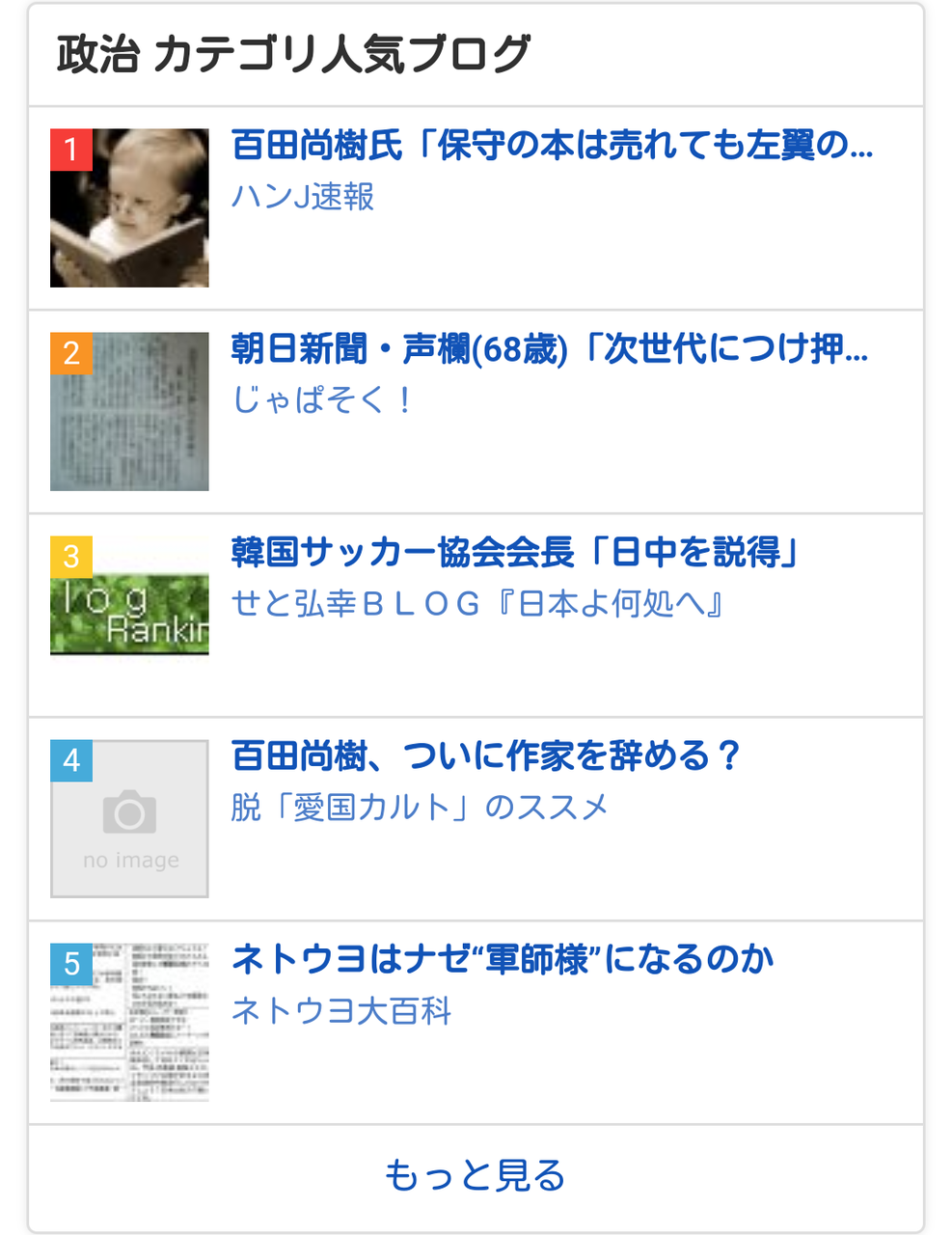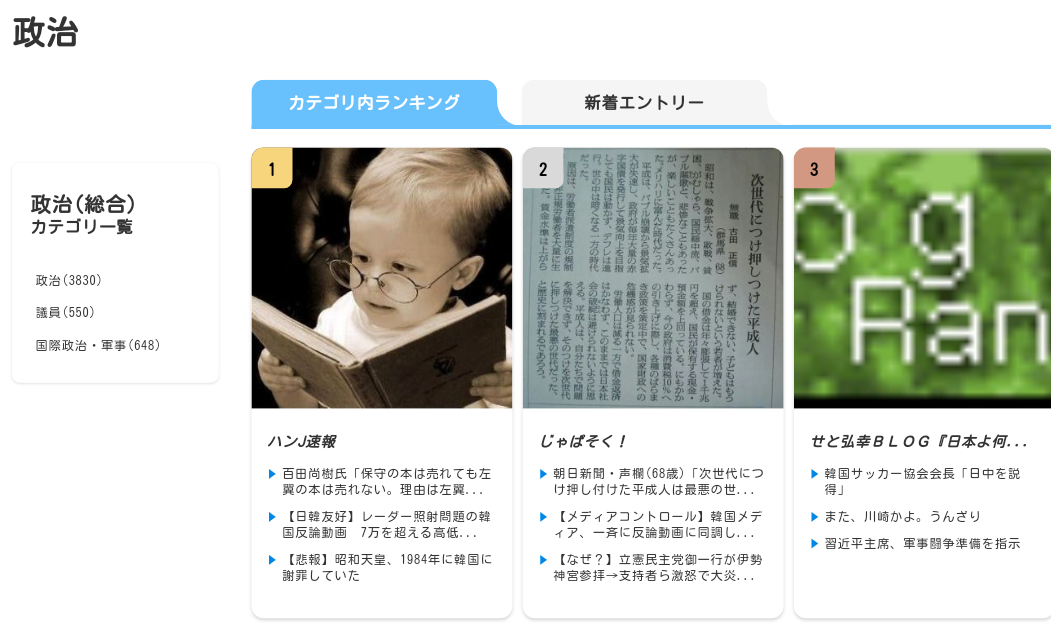 ハンJ速報、政治カテゴリランキングで1位になってしまう