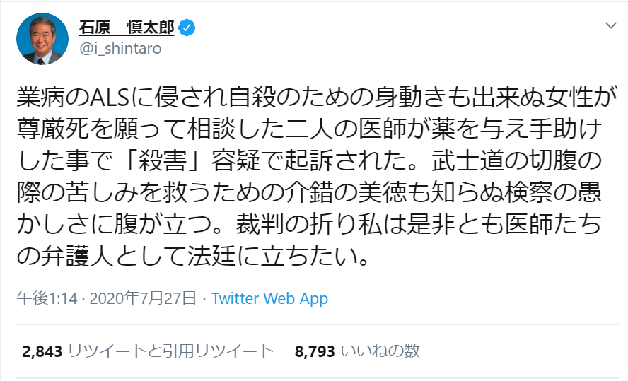 武士道の切腹の際の苦しみを救うための介錯の美徳も知らぬ検察の愚かしさに腹が立つ。