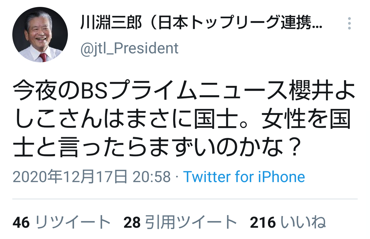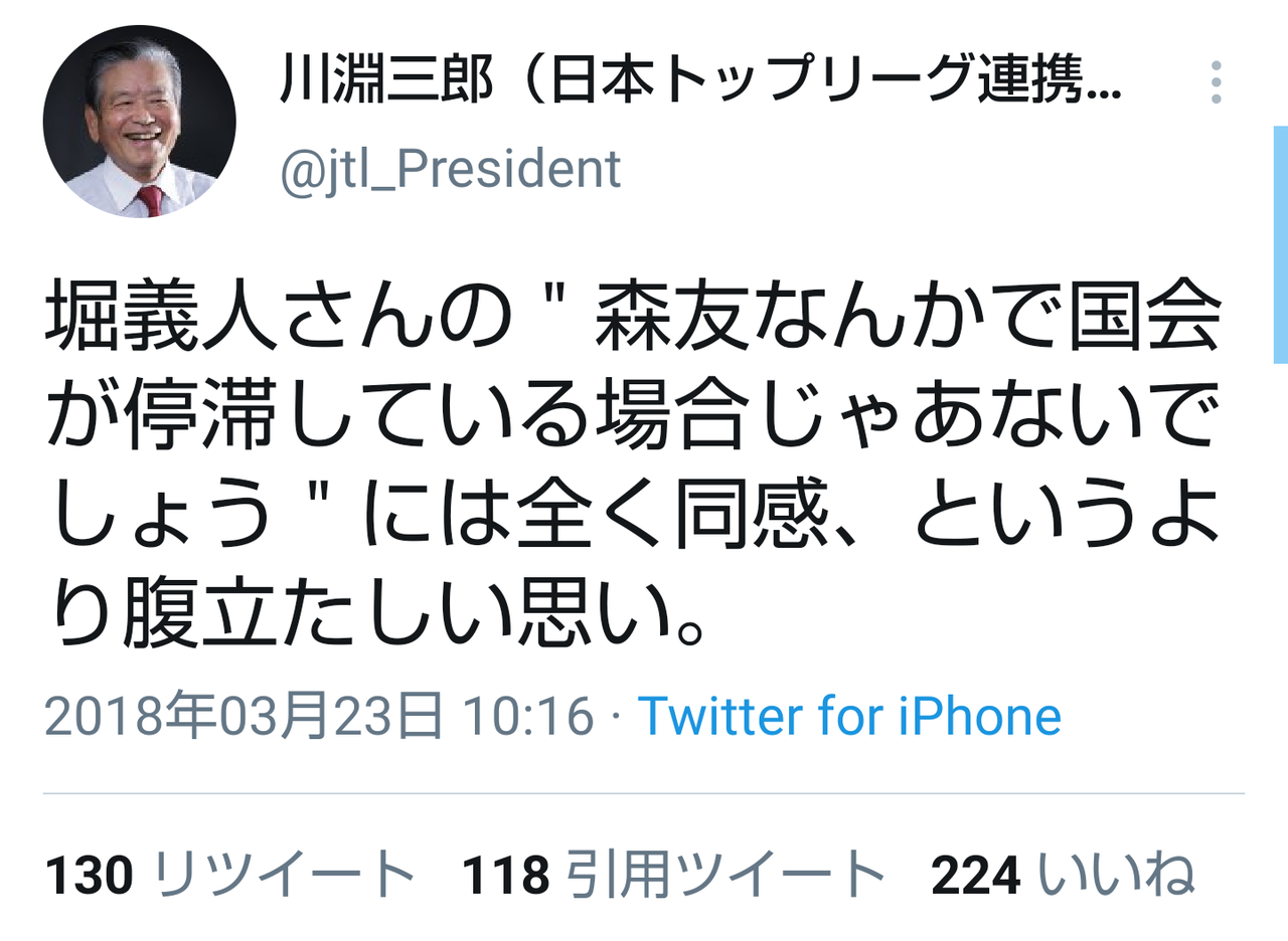 川淵三郎(日本トップリーグ連携機構会長)@jtl_President