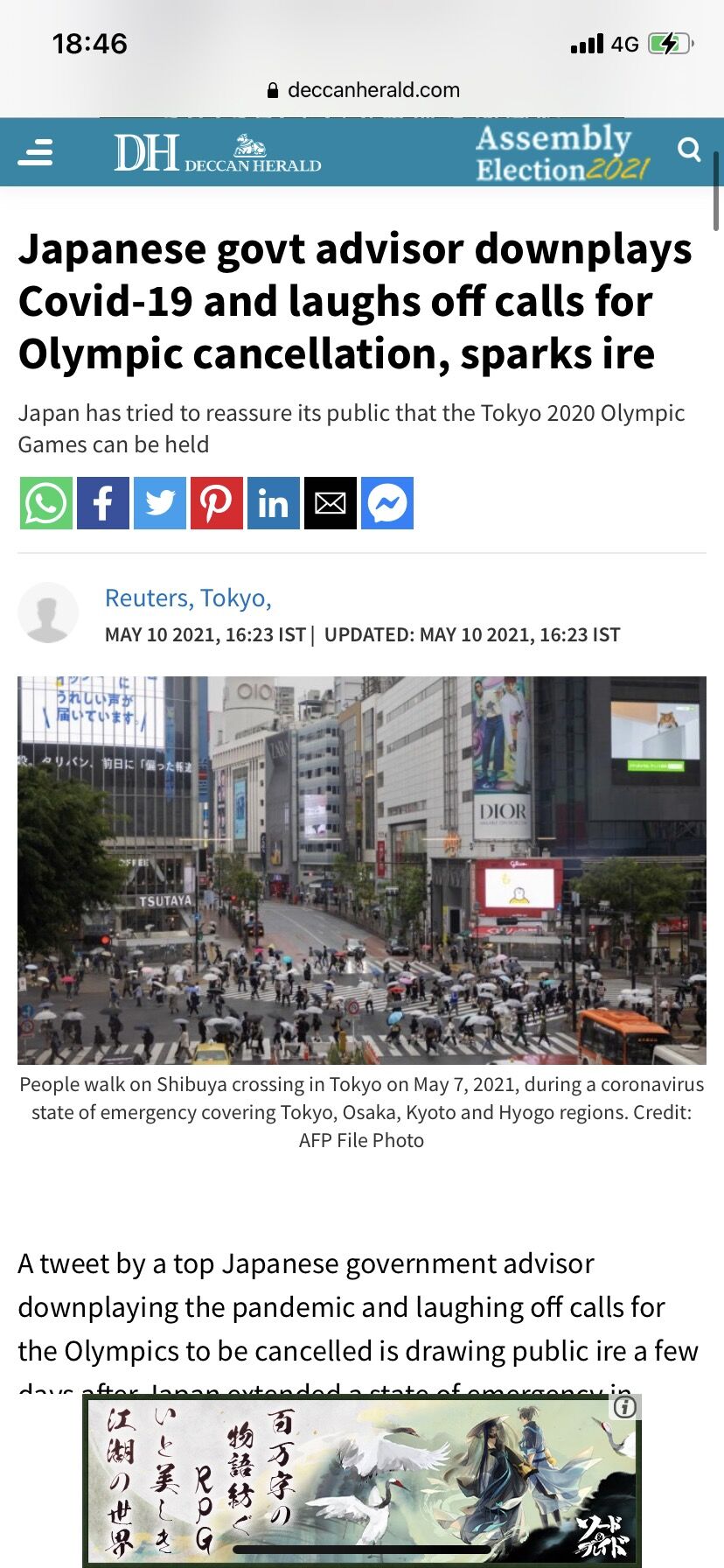 "政府の特別顧問が、オリンピック開催を正当化するためだけに人の死を軽視するような人物だとは信じられない "と、あるTwitterユーザーは述べています。