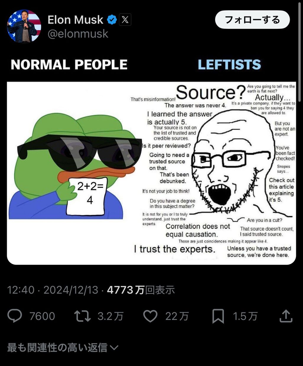 【画像】お前ら、イーロンマスクに馬鹿にされてしまうwwwww22万いいね。左翼wwwwwwww