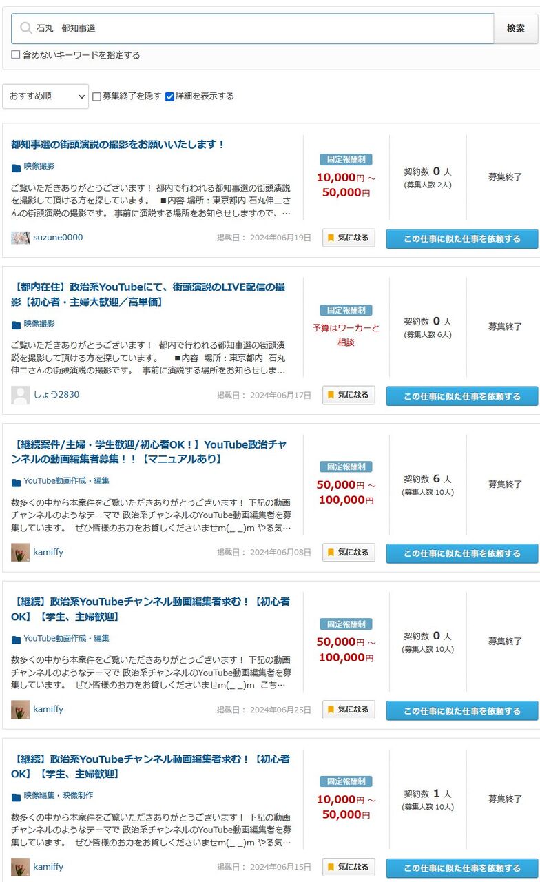 - クラウドワークスは札ド叩き日ハム上げの動画編集者も募集してた