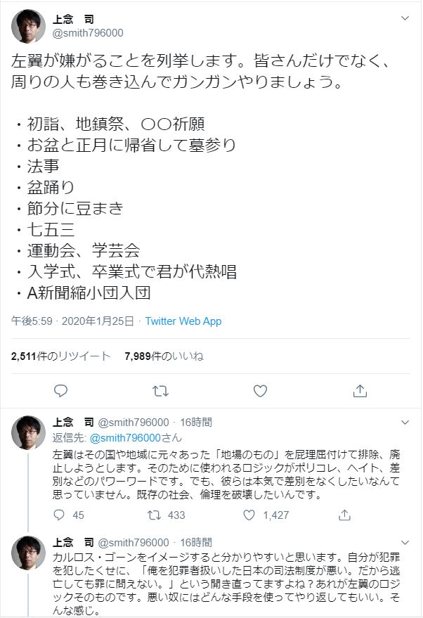 上念の主張通り、パヨチンへの嫌がらせだけが「愛国」で「保守」のする事なの?