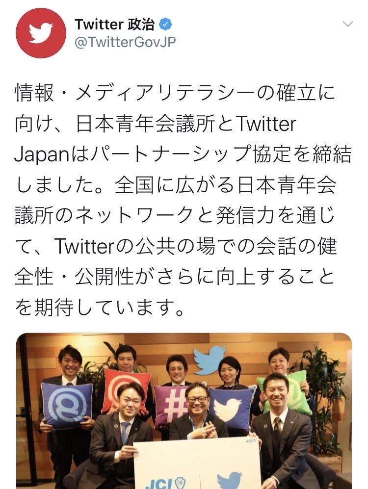 またTwitter Japanは自民党支持組織で、日本会議などと改憲運動をしなが様々な差別的デマを流してきた日本青年会議所との提携を発表