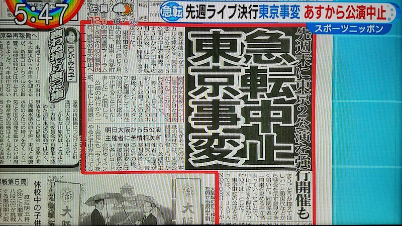個人的には、ライブが中止になったバンドマンの損失なんかには血税を使ってほしくないんだよ。もっと別な使い道あると思うからさ。