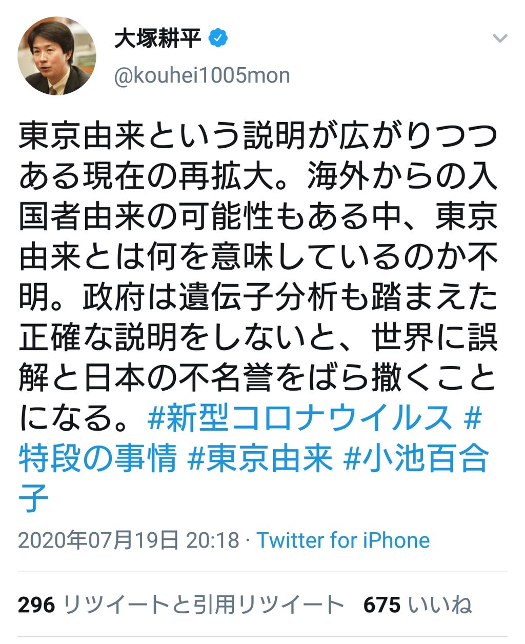 一昨日もこんなツイートしてなんだかなぁと思ったけど大塚ってそんなウヨってるの?