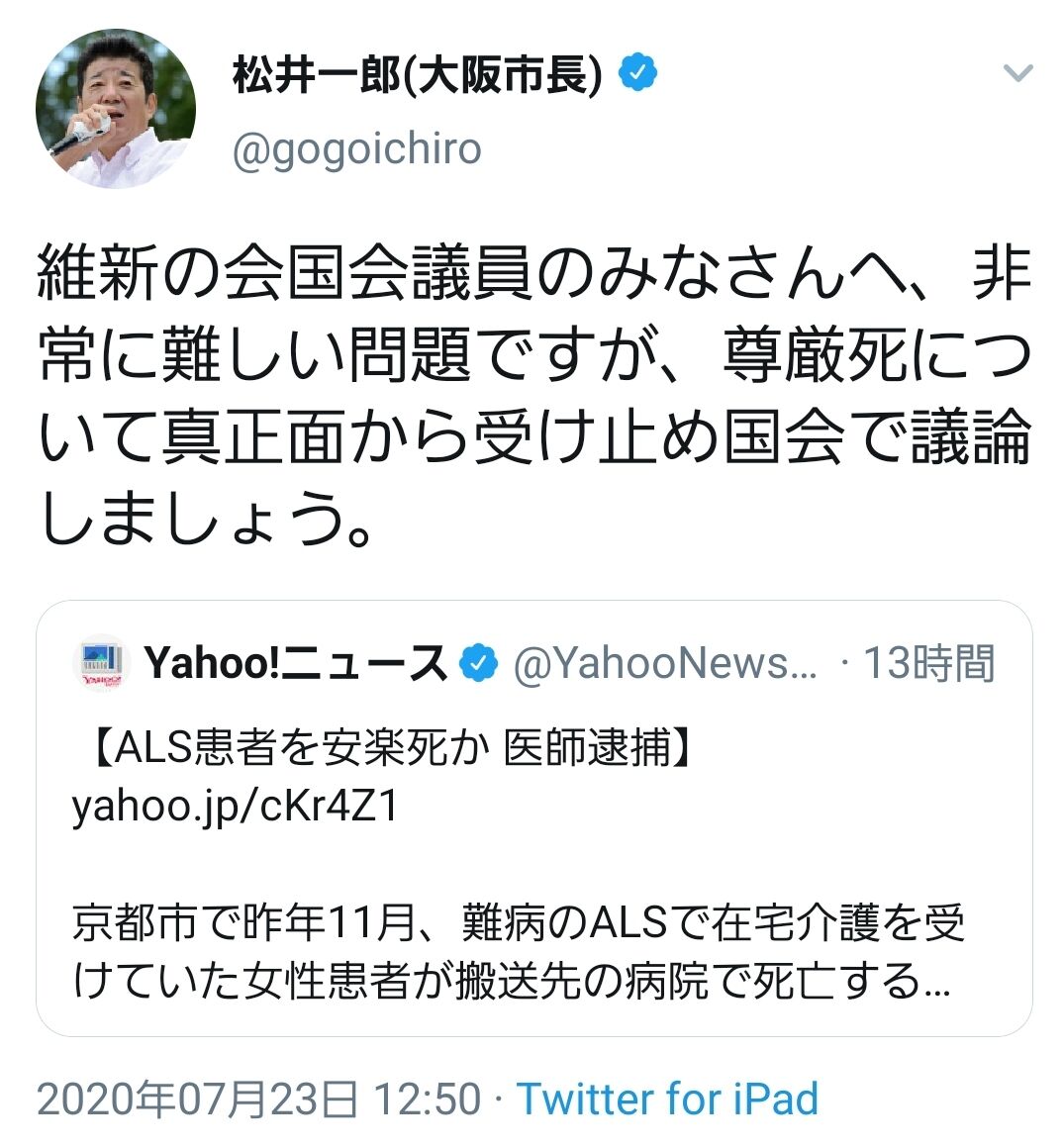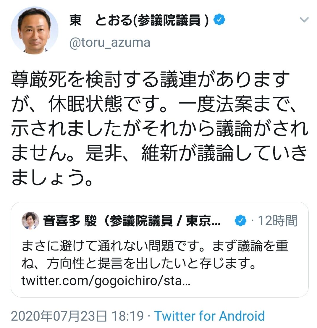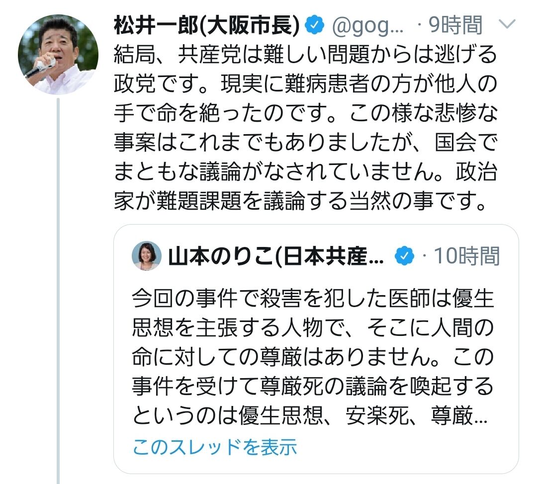 あそこまでの優生思想丸出しの事件をきっかけに安楽死の議論を深めたいとかやはり正気とは思えない