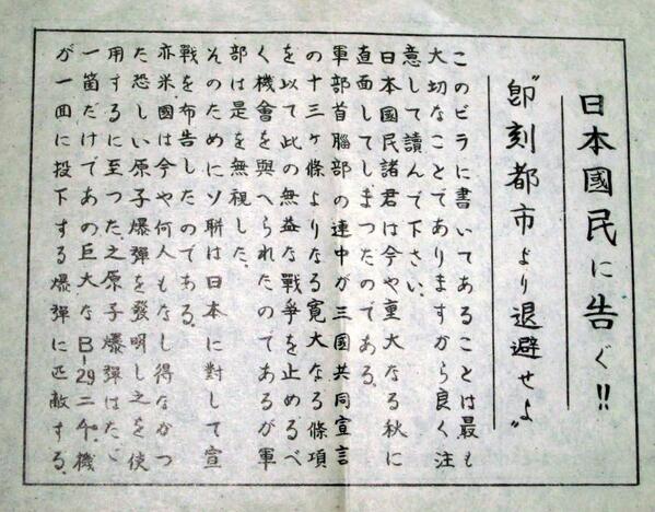 我々は原爆を使う用意がある、国民をこんな目に合わせたくないなら我々に逆らうなというメッセージよ