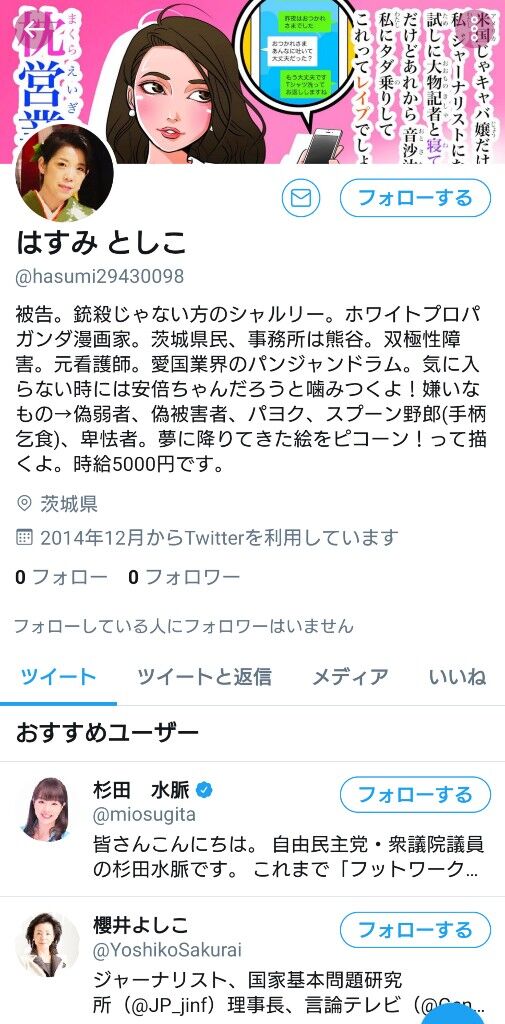 そのネトウヨ市議は杉田水脈と同郷とゆー。。。。。。