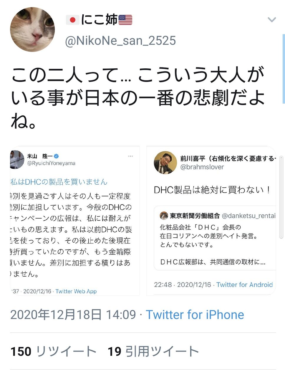 勝手に在日云々と騒いでる愛国企業のDHCをパヨチン扱いとか反日か?