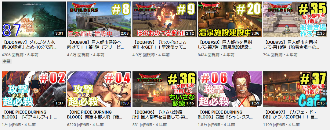 見ての通りの動画たち、再生数は10万単位で安定している。