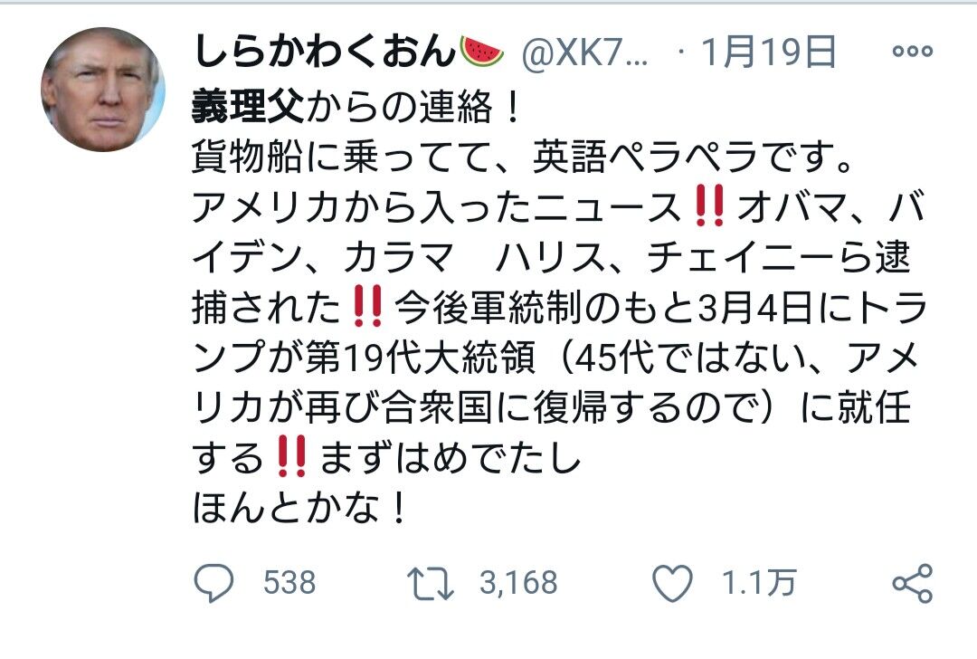 バイデン政権にはこういったデマ拡散ウヨを一匹残さず一斉逮捕してほしいもんだ