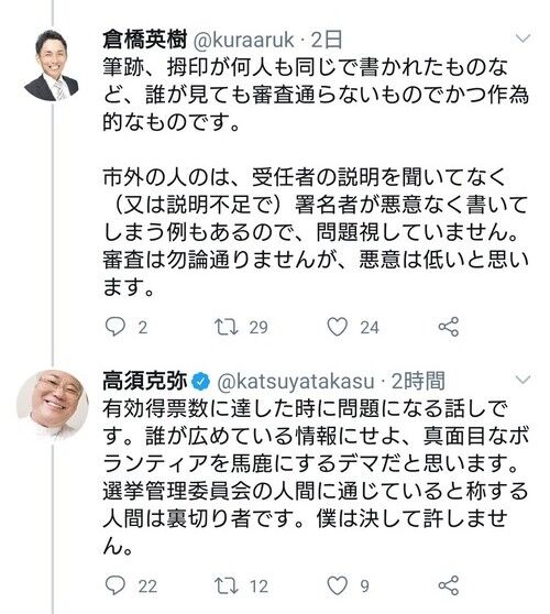 ここまで妨害工作の妄想を巡らせてる人が、あの大量の署名簿は見過ごしてしまうのは考えづらいよな