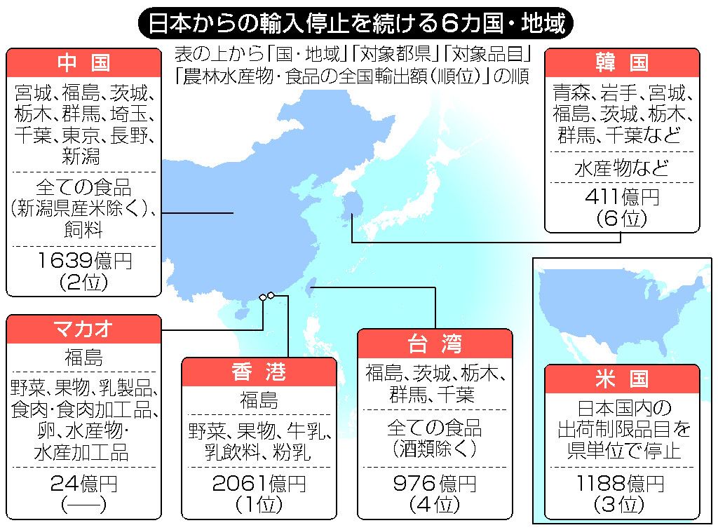 台湾をはじめ中国や韓国など15カ国・地域が日本の水産物や食品の輸入規制を続けている。