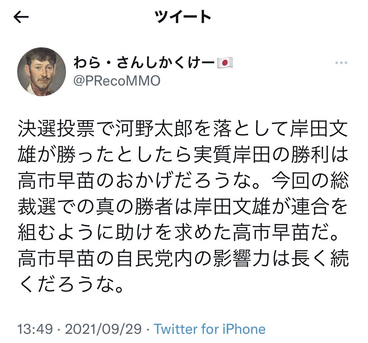 河野は議員票で高市以下の雑魚だったな