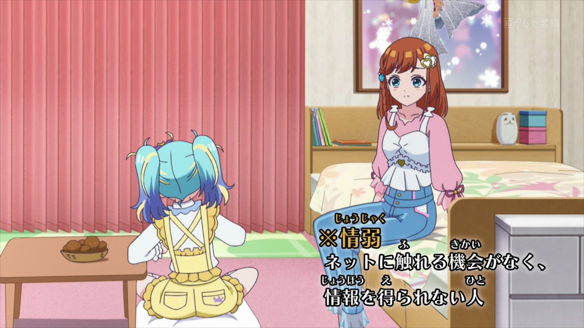 ここで登場する「情弱」は、まつり(赤茶髪の子)とみゃむに対してコンタクトを取る際にまつりがSNS等をやっていなかったせいで、直接会いに行くしか方法がなかったことを語彙力のないれもんが表現したものね。