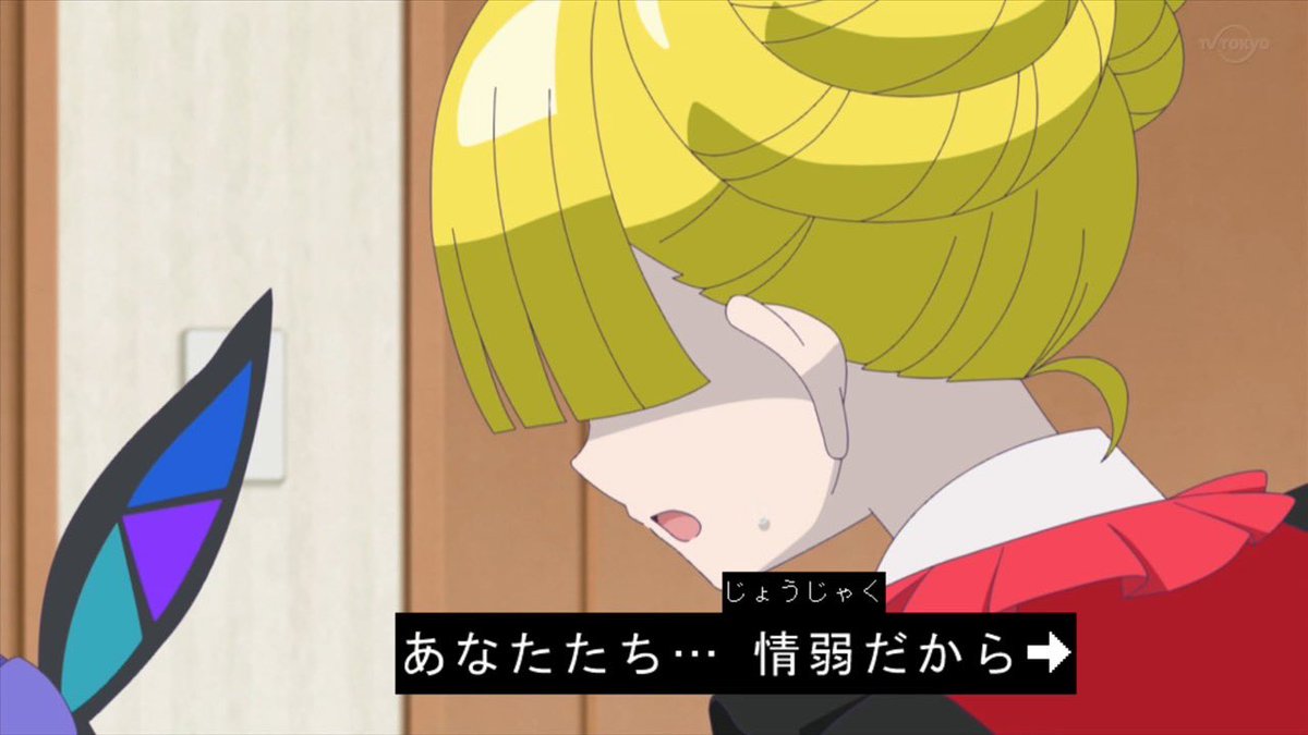 当然このセリフとテロップはそのまま流れてるし、その直後にみゃむ(水色髪の子)から「オマエ、命を懸けてケンカを売りに来たのか」と怒られ、れもん(れもん髪の子)のパートナーのきゃろん(1枚目に耳だけ写ってる言葉を喋れるウサギ)が「悪気はないんです。コミュニケーションの距離感をつかむのが苦手なだけです」と火消しに走るという流れ。
