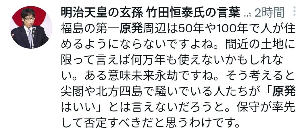 一応、保守はそれで当然なんだけどな、日本の国土を保守するんだから、保守出来なくしてしまった原発を推進する奴らはみなエセ保守
