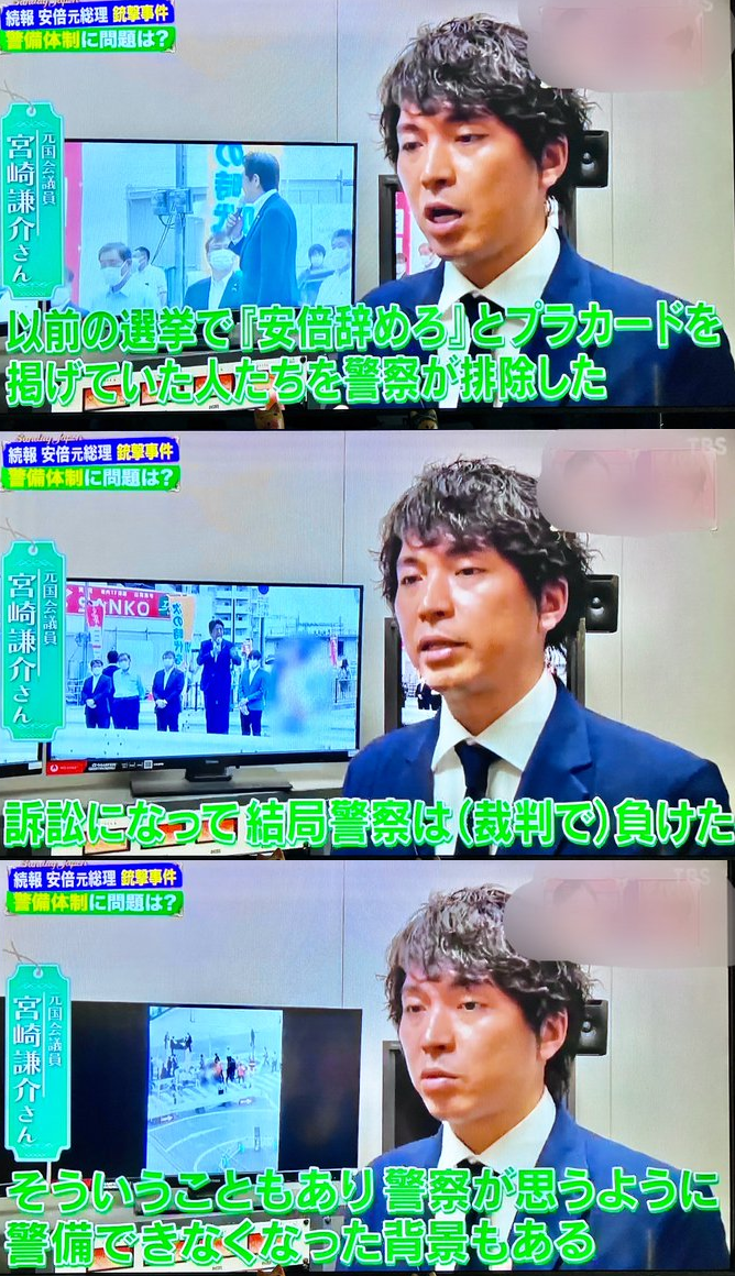 街宣車への接近阻止を適法と認めてる時点で、この判決は今回の事件で警察の足を引っ張るどころか、山上がある程度近づいた時点で阻止するのを正当化する判決なんよな。つまり警備してた奴等がこの判決の内容を理解してたら安倍暗殺は防げた。