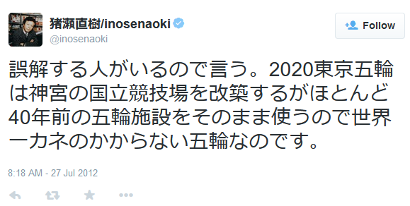 猪瀬「誘致のためにちょっと盛って言うのは当然」
