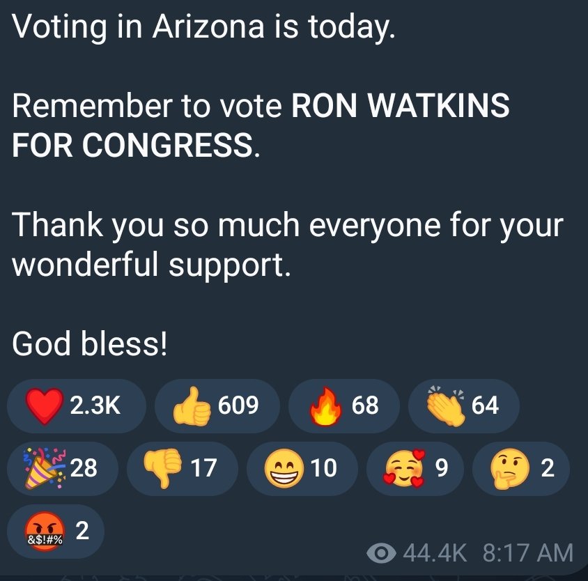 米中間選挙の西部アリゾナ州の共和党予備選が2日投開票され、連邦下院州第2選挙区では極右系陰謀論「Qアノン」の発信元「Q」である可能性が指摘されるロン・ワトキンス氏が立候補していたが、支持が広がらずに大敗する見通しとなった。Qアノン信奉者の間にはトランプ前大統領を「救世主」とみなす主張があり、ワトキンス氏も接近を図ったが、「勝てる候補」を重視するトランプ氏から支援を得られなかった。