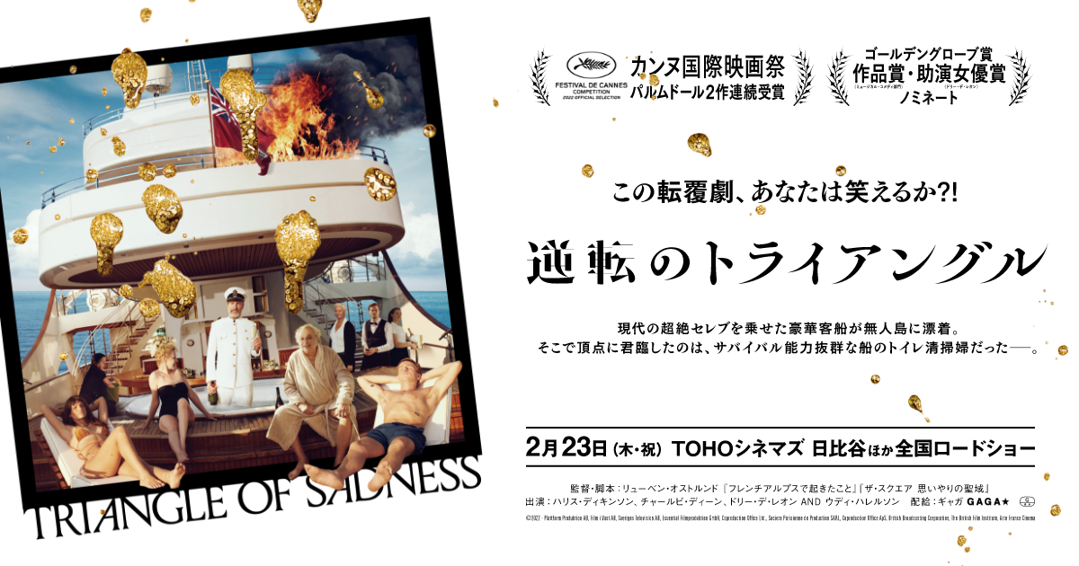 第75回カンヌ国際映画祭でパルムドールを受賞した、『Triangle of Sadness(原題)』が邦題『逆転のトライアングル』として、2023年2月23日(木・祝)よりTOHOシネマズ 日比谷ほかにて全国公開決定。