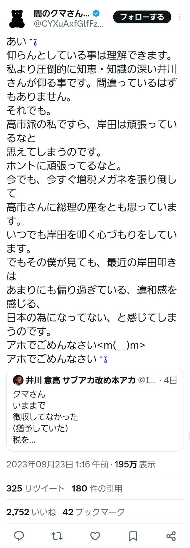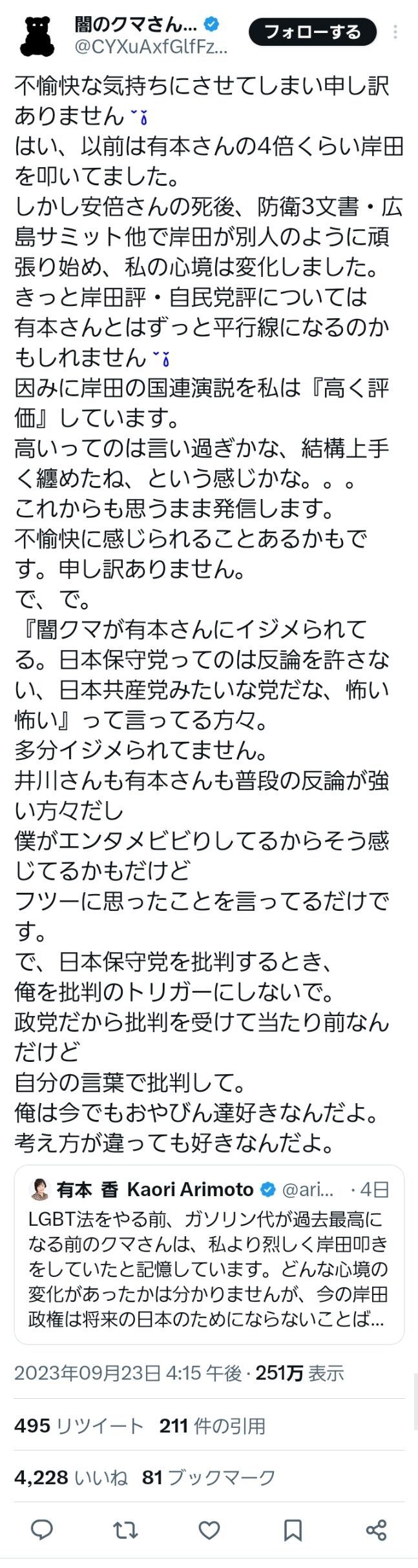 闇クマ「岸田は頑張っている」