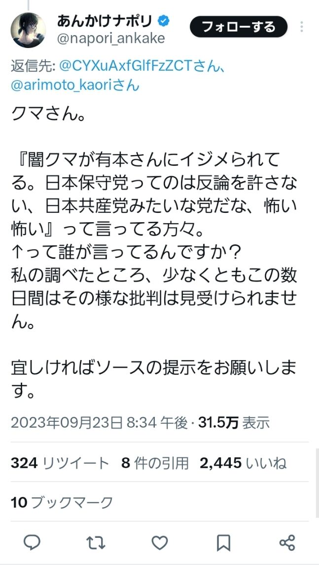 仲間内メディア(夕刊フジ、正論、will、Hanada)と違って、アメリカ大統領選挙の不正投票論も、愛知県知事リコール署名活動も、福岡や名古屋や近鉄駅や(中略)のハングル表記についてのTwitter(当時)も、聴く可能性は少なからずあるから、そのつもりで理論的に回答しなさいよ。