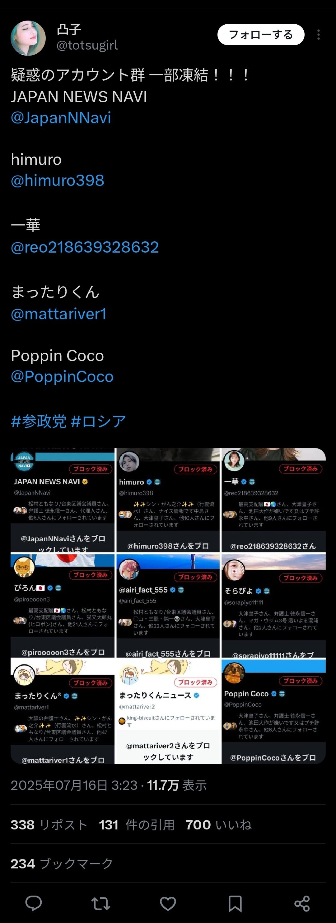 Japan News Navi本体はまだ凍結されたままだが、何人かは復活してまたサイトの記事拡散を続けている模様