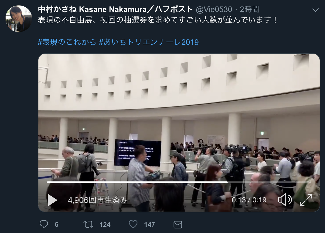 名古屋市の河村たかし市長は7日、企画展「表現の不自由展・その後」の再開に合わせ名古屋市内の会場を訪れ、抗議の座り込みを行うことを記者団に明らかにした。