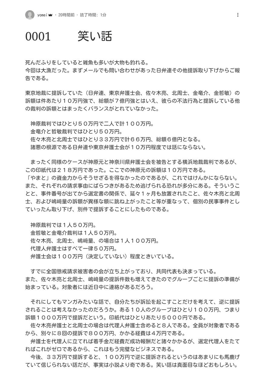 原告私の不当懲戒請求事件、横浜地裁で全額認容(33万)判決です。被告6名。欠席判決は2人で、残りは反論した上での判決。